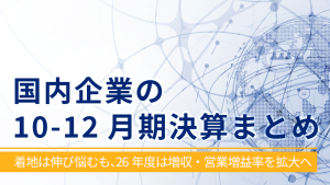 国内企業の10-12月期決算まとめ 〜着地は伸び悩むも、26年度は増収・営業増益率を拡大へ〜